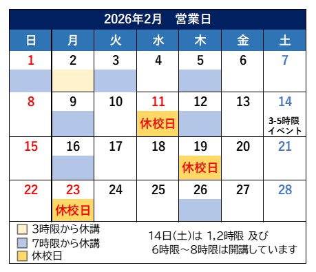 休校日:3(火)、12(木)、20(金祝)、30(月)